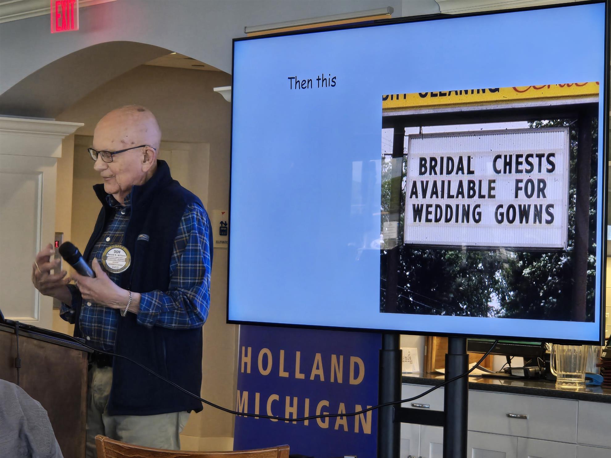 Membership - Jim Crozier proposed Rotary yard signs to raise awareness about us, asking about a Rotary emblem on the Welkom To Holland signs, and radio spots.